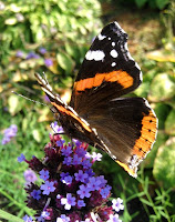 Op de foto is de atalanta te zien terwijl hij geniet van een slokje Verbena. Een plant die voor ons bijzonder bitter smaakt. Deze plant is op dit moment vooral in vele tuinen te bewonderen. Ook hier op het Larensteinse landgoed, waar de foto gemaakt is door Roel de Greeff, is de plant veel te vinden.