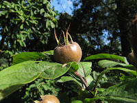 Een van mijn favoriete inheemse bomen, de Mispel (Mespilus germanica). Naast stromend water en riolering hebben we ook deze prachtige plant aan onze goede vrienden de Romeinen te danken. De mispel is oorspronkelijk afkomstig van rond de Kaspische zee maar werd door de Romeinen door europa verspreid. In 878 hadden de graven van Gelre drie mispelbloemen in hun wapen staan dus gaan archeologen er van uit dat de mispel in de 9e eeuw naar Nederland kwam. Sindsdien is de mispel niet meer weg te slaan uit onze cultuur en taal. Het gezegde “zo rot als een mispel” klopt echter niet helemaal. Mispels zijn namelijk, net als elk ander fruit, rot niet eetbaar. Gegist is dit een heel ander verhaal. Dan is het vruchtvlees zacht en bruin en heerlijk zoet! Pluk je mispel dus in Oktober of November en laat hem drie weken ondersteboven op een koele plaats liggen tot het vruchtvlees voldoende gefermenteerd is. Boordevol vitamine C en weer een keer wat anders dan een appel of peer.
