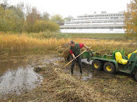 Winterklaar maken houd hier vooral in; maaien, maaien en nog eens maaien. Het maaien gebeurt voor het grootste gedeelte met behulp van een trekkertje. Waar dit niet kan moeten de stoere tuinmannen met de bosmaaier aan de slag. Het gemaaide gras word vervolgens met de hand opgeladen en afgevoerd naar een van de composthopen op het terrein waar het een prima overwinteringplaats bied voor amfibieën, kleine zoogdieren en insecten. Het bladafval uit de demonstratietuin word op andere hopen gecomposteerd dan het gras uit de graslandjes. Dit word gedaan om te voorkomen dat exoten uit het T&L gedeelte van de tuin bijzondere soorten uit de heemtuin verdringen.