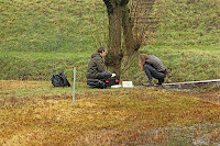 Er is alleen een probleem. Al het water is even nat en ziet er ook nog eens (meestal) allemaal het zelfde uit! Als je wilt weten met wat voor water je te maken hebt zul je dus op onderzoek uit moeten. Op Landgoed Larenstein hebben we wateren van verschillende kwaliteit en verschillende herkomst. Voor een onderwijsinstelling die gaat over natuur inrichting en milieu is er geen betere locatie denkbaar! De studenten op de foto zijn hier met een veldset bezig enkele tests uit te voeren om het zuurstofgehalte en de waardes van enkele andere opgeloste stoffen te bepalen. Later word dit in het laboratorium uitgewerkt zodat je precies kunt zien wat voor water je hebt gevonden. En nou maar hopen dat ze er niet invallen.